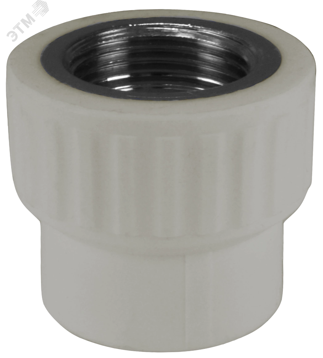 Комбинированный полипропиленовый фитинг, закладная деталь изготовлена из латуни марки ЛС-59-2. Используется для соединения полипропиленовой трубы и элемента системы с резьбовым соединением. Латунные части производятся методом горячего штампования, пластиковые - методом литья под давлением.