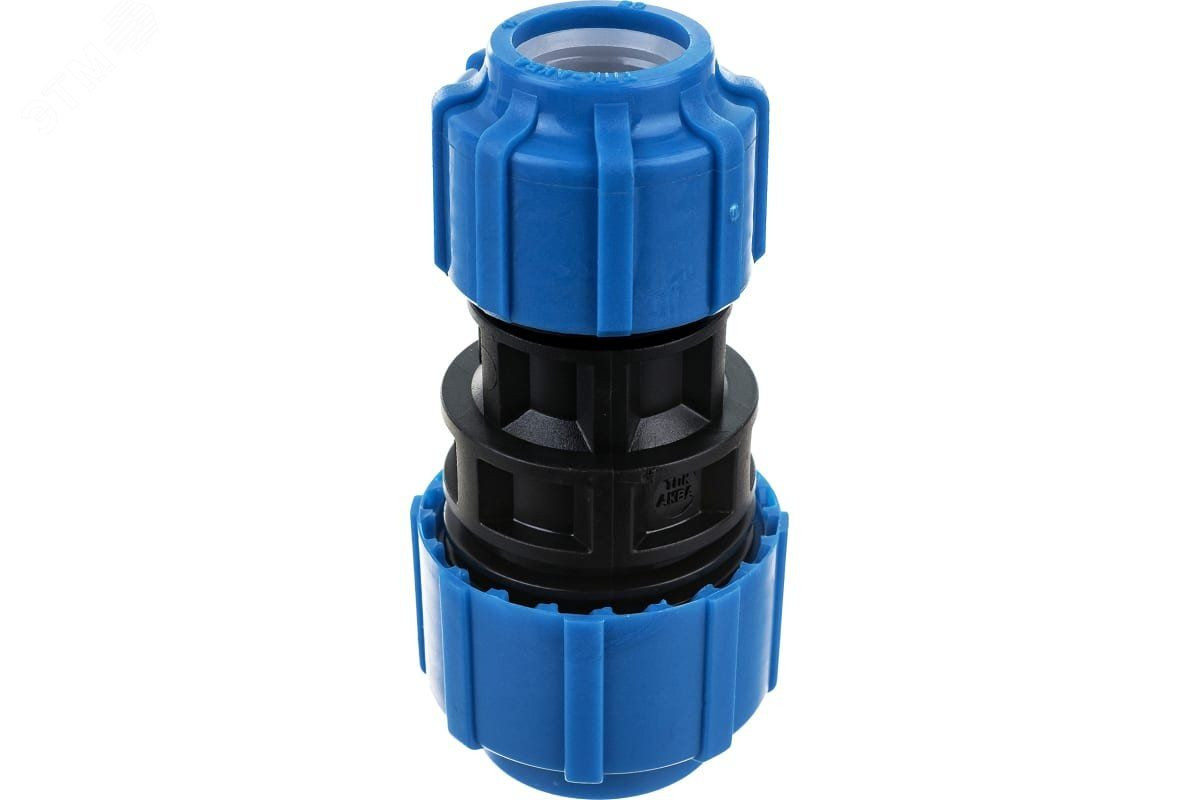 Муфта соединительная переходная компрессионная. Данный вид муфты применяется для перехода с трубы большего диаметра на трубу меньшего диаметра, в трубопроводных системах питьевого или технического водоснабжения с применением полиэтиленовых ПНД труб. Такая муфта широко используется  при строительстве систем полива на частных приусадебных хозяйствах, систем орошения городских газонов, или в сельском хозяйстве. Оптимальна при строительстве фонтанов, бассейнов.