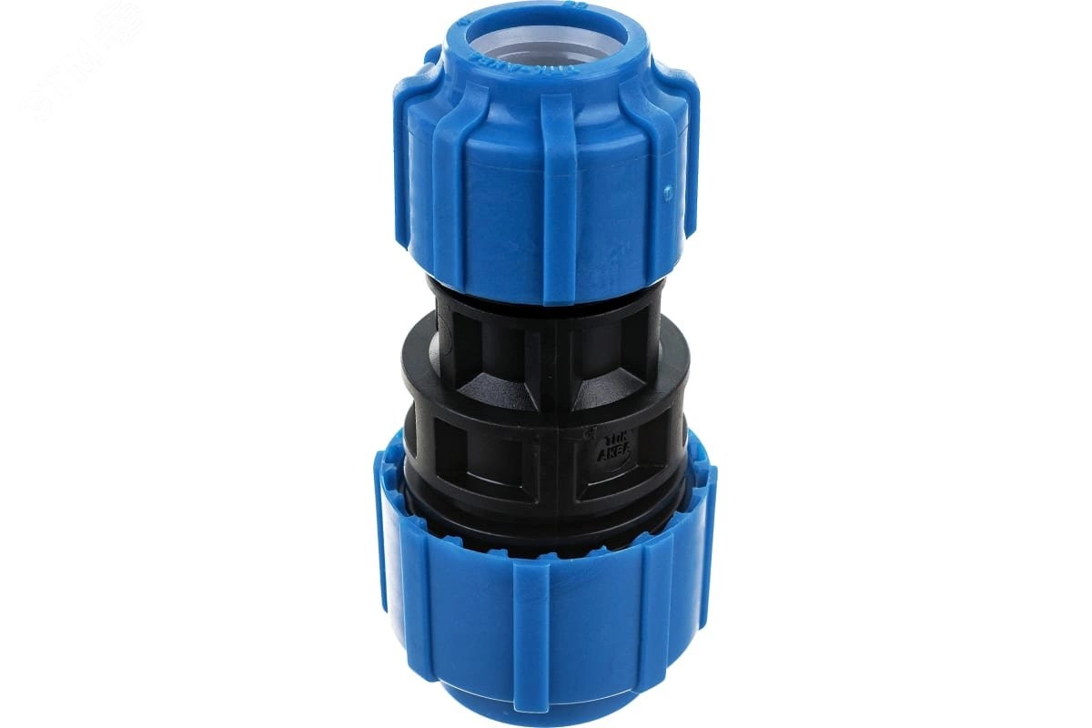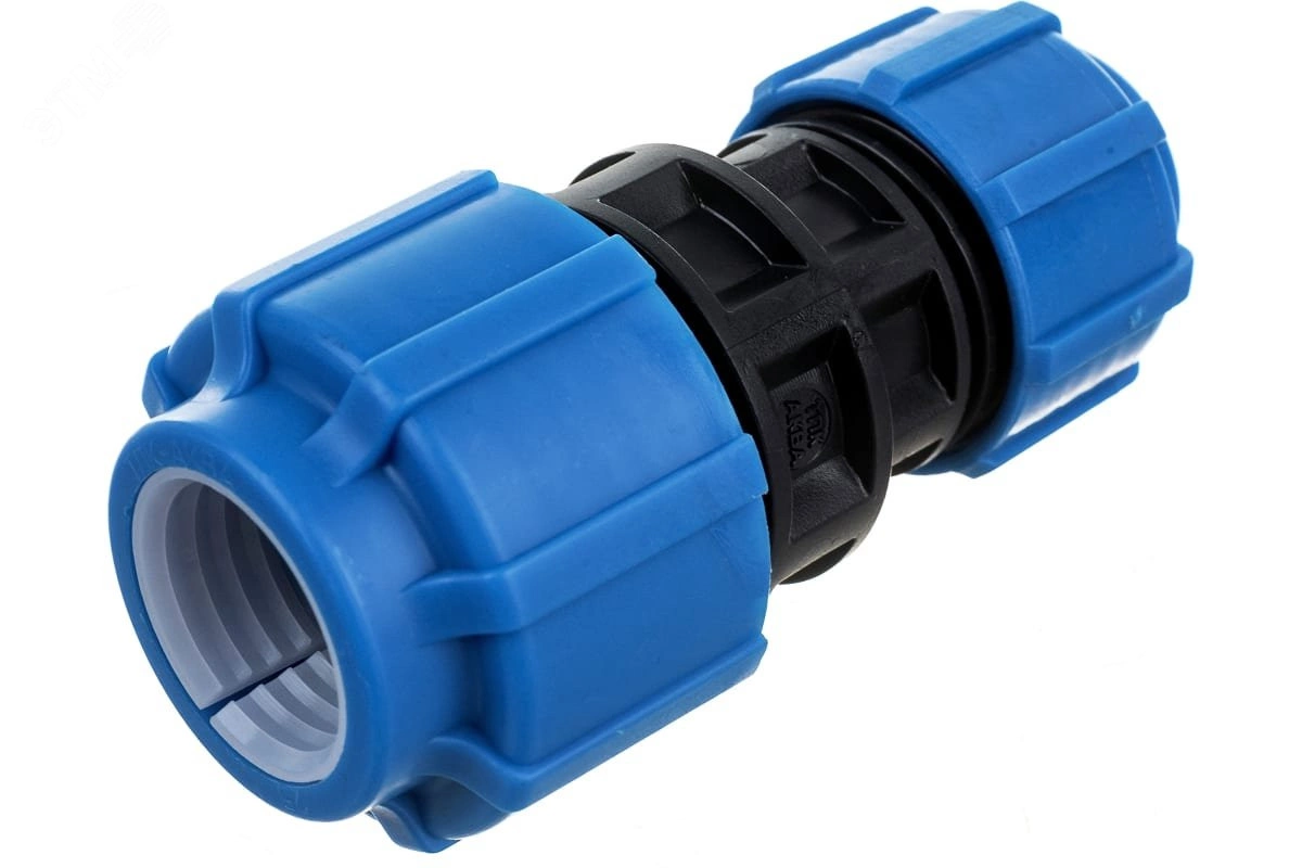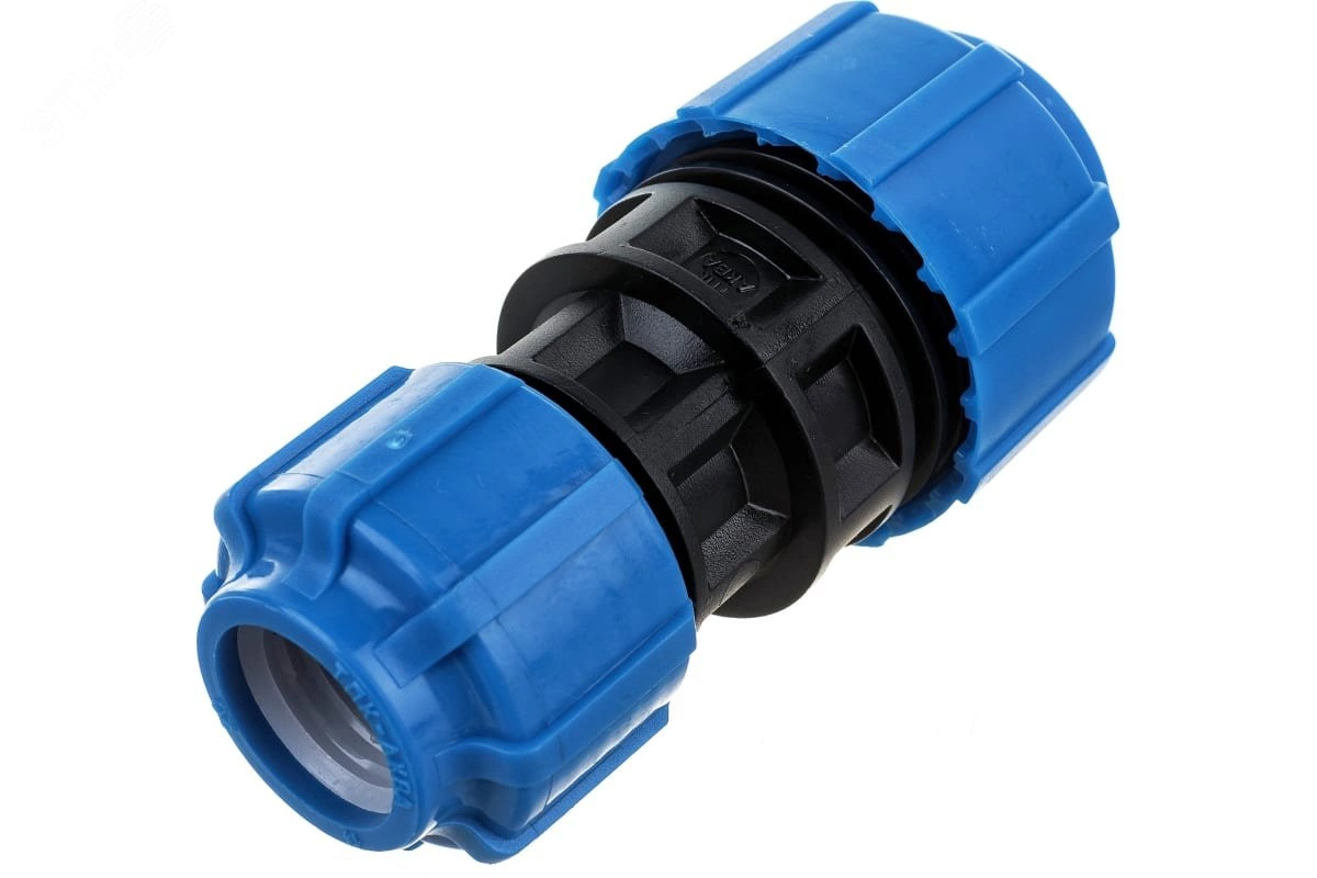 Муфта соединительная переходная компрессионная. Данный вид муфты применяется для перехода с трубы большего диаметра на трубу меньшего диаметра, в трубопроводных системах питьевого или технического водоснабжения с применением полиэтиленовых ПНД труб. Такая муфта широко используется  при строительстве систем полива на частных приусадебных хозяйствах, систем орошения городских газонов, или в сельском хозяйстве. Оптимальна при строительстве фонтанов, бассейнов.
