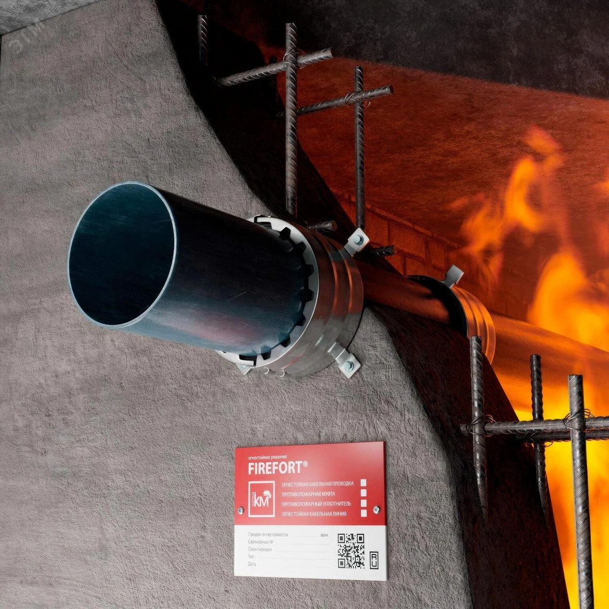Противопожарная муфта применяется в гражданском и промышленном строительстве и устанавливается на все виды пластиковых водопроводов. Конструкция противопожарной муфты FIREFORT CLUTCH КМ-FF-С - металлический корпус с застежкой и специальный вкладыш из огнезащитного терм расширяющегося материала. При пожаре пластиковые трубы выгорают до манжеты, стальной корпус нагревается и передает тепло внутрь муфты. Вкладыш из термореагирующего материала расширяется и моментально герметизирует образовавшееся отверстие, перекрывая доступ кислорода и распространение огня в смежные помещения. Предел огнестойкости 150 мин. Установка противопожарной муфты проста и не требует специальных инструментов. Фиксация муфты к стене производится с помощью крепежных элементов. Изделие соответствует требованию настоящих ТУ 123-ФЗ «Технический регламент о требованиях пожарной безопасности» и ГОСТу Р 53306 «Узлы пересечения ограждающих строительных конструкций трубопроводами из полимерных материалов».