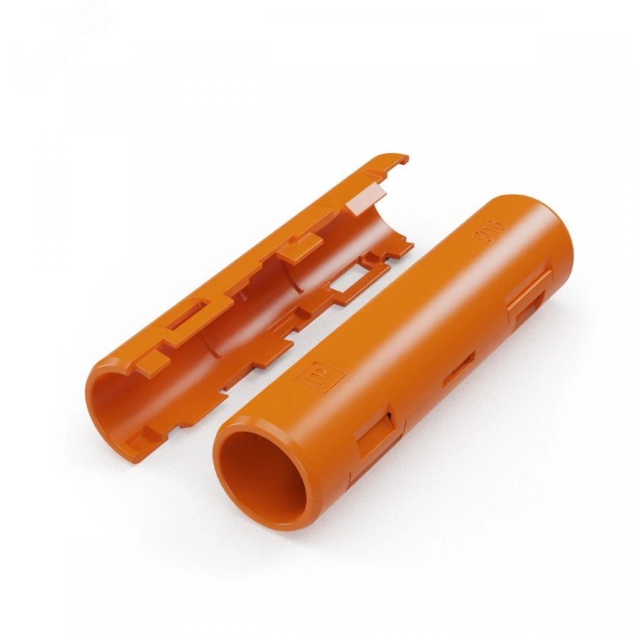 Муфта разборная позволяет соединять гофрированные и гладкие трубы различных типоразмеров без использования специальных инструментов, как при прокладке проложенной кабеленесущей трассе вновь, так и по ранее смонтированной системе труб, в том числе с переходом с гофрированной трубы на гладкую одного типоразмера. Ассортимент дополняют муфты оранжевого цвета для использования в комплекте с гладкими и гофрированными трубами в таком же цвете.