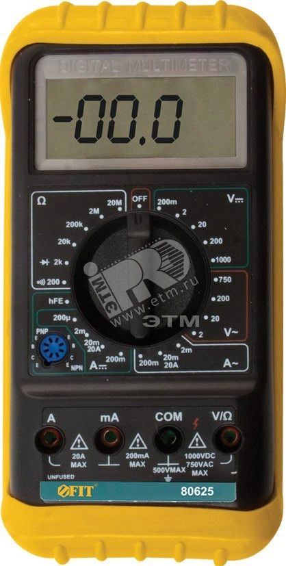 Мультиметр 0.1 мВ-1000 В, 0.1 В-750 В, 1 мкА-20 А, 0.1 Ом-20 МОм, коробка