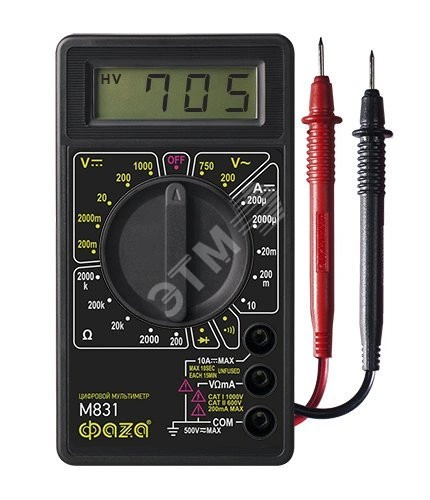 Обладая невысокой ценой, небольшими размерами и наличием всех необходимых функций, мультиметры этой серии являются самыми универсальными и распространенными. Легкий и компактный Функции - Измерение постоянного напряжения - Измерение переменного напряжения - Измерение постоянного тока - Измерение сопротивления - Диодный тест - 'Прозвонка' В комплекте измерительные щупы, батарейка 9В