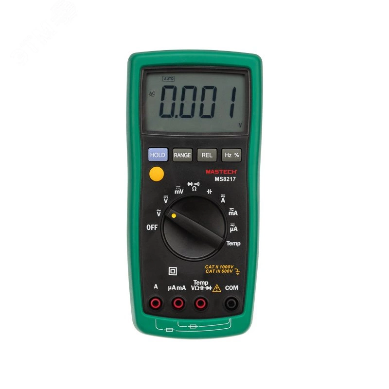Мультиметр — электроизмерительный прибор, который включает в себя несколько функций и набор измеряемых параметров. Все приборы серии MS8217 измеряют постоянное и переменное напряжение, а также постоянный и переменный ток, сопротивление в цепи, емкость, частоту и даже температуру. С помощью данного прибора можно проводить тестирование диодов и осуществлять прозвонку целостности цепи. Таким образом, один прибор сможем заменить сразу несколько устройств одновременно. Также у этих MS8217 есть режим относительных измерений (REL), который позволяет проводить более точные измерения благодаря вычету влияния электрических параметров самого прибора, ведь как сам прибор, так и его щупы имеют свое сопротивление, индуктивность и емкость.