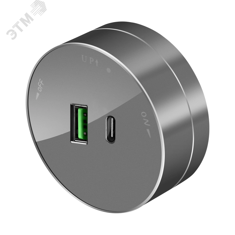 Розетка трековой системы MultiTrack (Systeme Electric) 2хUSB (тип А + тип С) 18 Вт, 5В/3А, 9В/2А, 12В/1.5А, цвет - графит. Устанавливается в шину MultiTrack. Быстрая и безопасная установка, не требующая привлечения специалиста: достаточно вставить розетку в шину и повернуть на 90 градусов до упора.