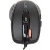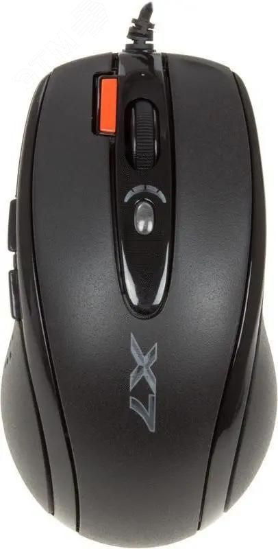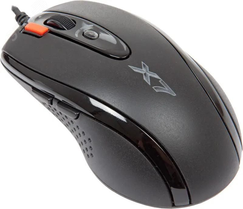 Проводная мышь A4Tech X-710BK относится к поколению игровых манипуляторов с большой скоростью обмена данных. Время отклика манипулятора можно настроить от 3 до 30 мс. Обработка изображений происходит со скоростью 6500 снимков в секунду. Симметричный корпус рассчитан под обе руки и сделан из черного пластика с покрытием SoftTouch. Используется проводное подключение с помощью USB, длина кабеля – 1.8 м. Мышь с габаритами 69x39x122 мм и весом 135 г удобно лежит в руке и легко передвигается пальцами. Для точного управления предусмотрены 7 кнопок (учитывая колесико). Кнопки также имеют резиновую структуру, предотвращающую скольжение пальцев. A4Tech X-710BK оснащена светодиодным датчиком с режимами разрешений от 400 до 2000 dpi и частотой опроса до 1000 Гц, что позволяет геймеру выбирать нужные параметры для игры. Особенностью манипулятора является кнопка “тройной клик” и встроенная память.