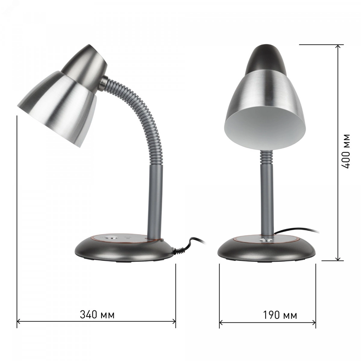 Настольный светильник ЭРА N-115-E27-40W-GY может использоваться с лампой накаливания, компактной люминесцентной лампой (КЛЛ) или светодиодной (LED) лампой. У светильника классический солидный дизайн, устойчивое металлическое основание. А также металлический плафон большого диаметра для комфортного рассеивания света. Направление света регулируется наклоном и поворотом плафона в любом направлении. Выключатель на основании светильника. Классический дизайн. Лампа в комплект не входит.