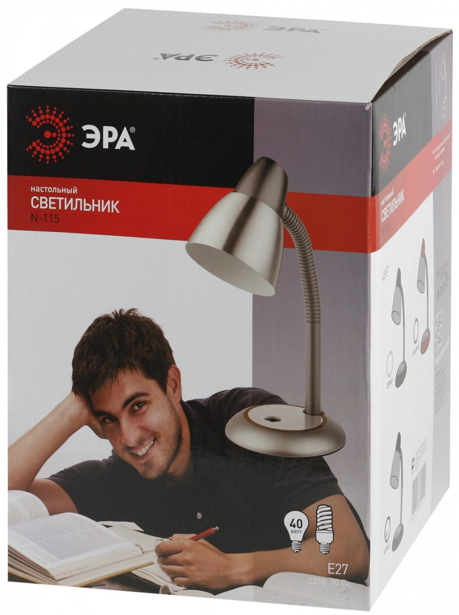 Настольный светильник ЭРА N-115-E27-40W-R может использоваться с лампой накаливания, компактной люминесцентной лампой (КЛЛ) или светодиодной (LED) лампой. У светильника классический солидный дизайн, устойчивое металлическое основание. А также металлический плафон большого диаметра для комфортного рассеивания света. Направление света регулируется наклоном и поворотом плафона в любом направлении.