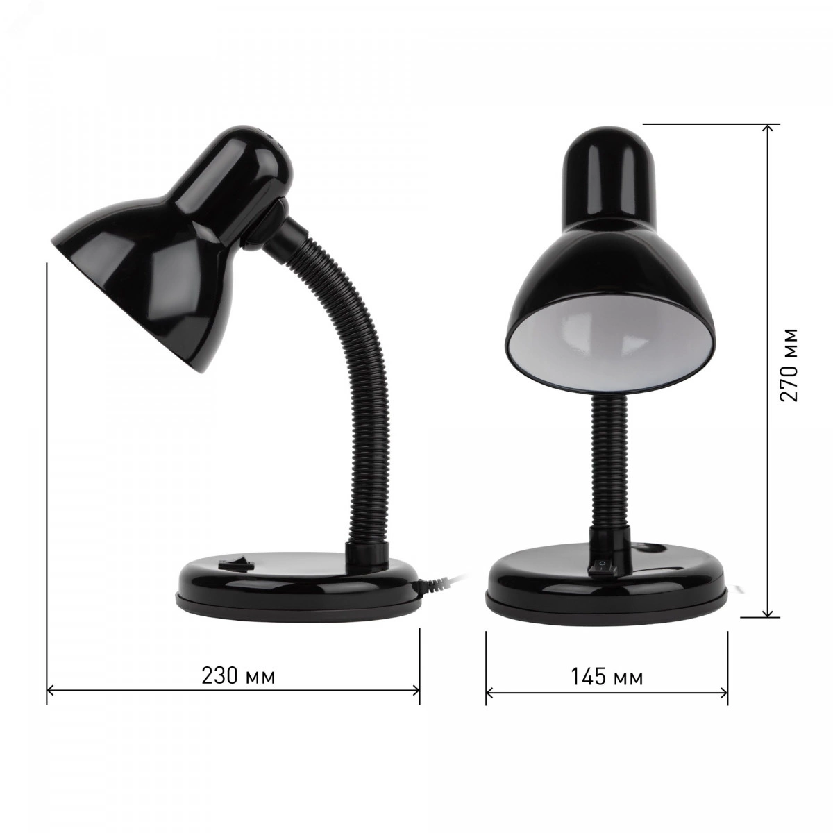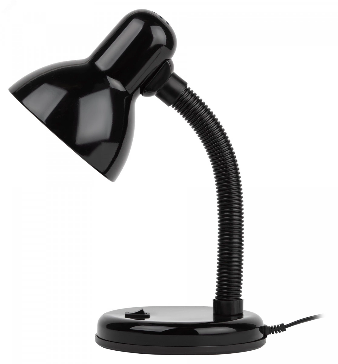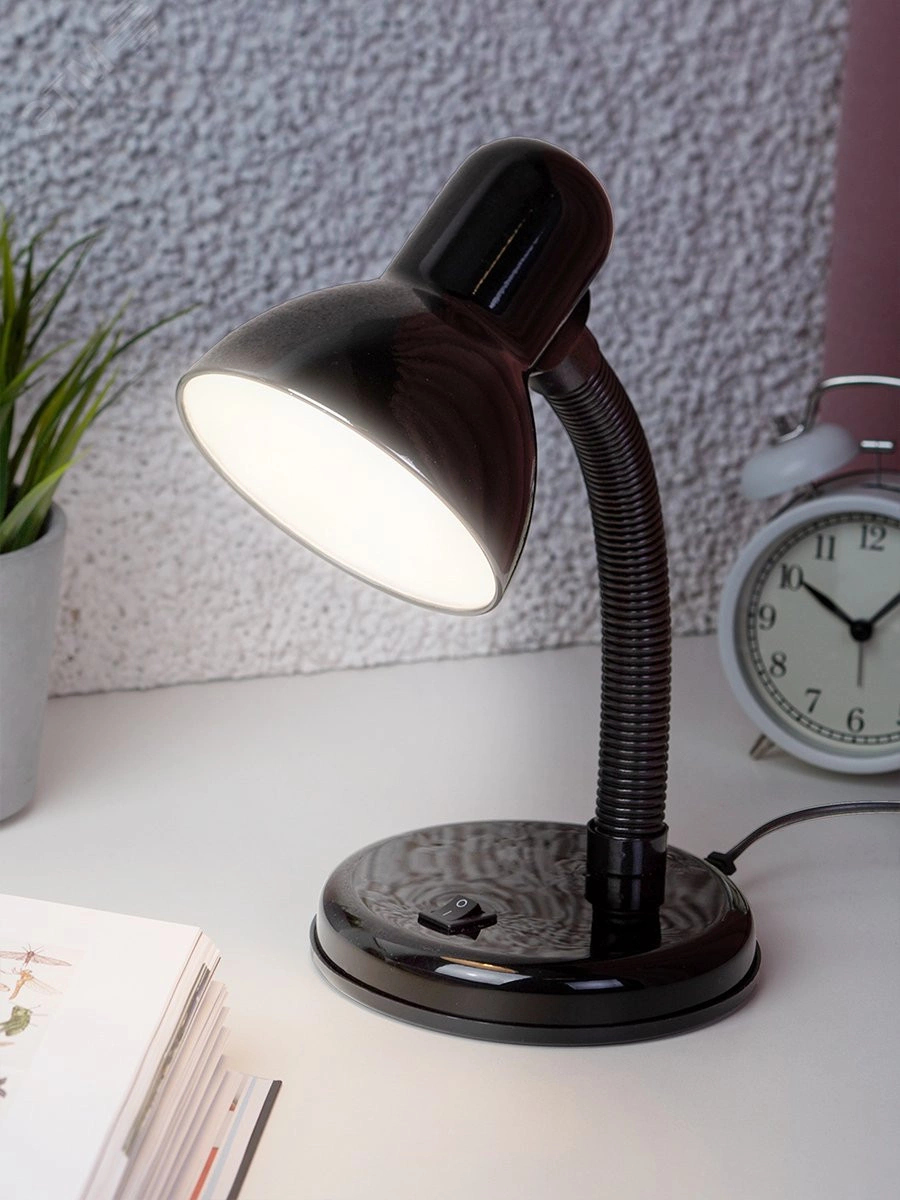 Металлический плафон. Направление света регулируется гибкой стойкой, которая обеспечивает наклон и поворот плафона в любом направлении. Выключатель на основании. Классический дизайн.Предназначен для использования с лампой накаливания или компактной люминесцентной лампой (КЛЛ): максимальная мощность 40W, цоколь E27, 220V 50HZ, лампа в комплект не входит.