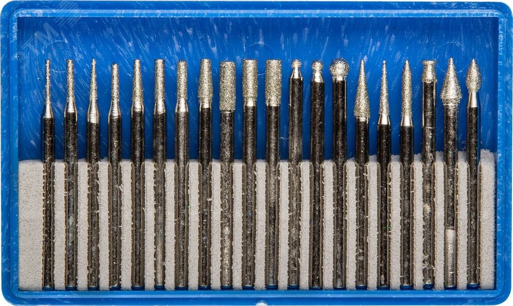Набор : Мини-насадки с алмазным напылением в пластиковом боксе, P=180, хвостовик d=3мм, 20 предметов