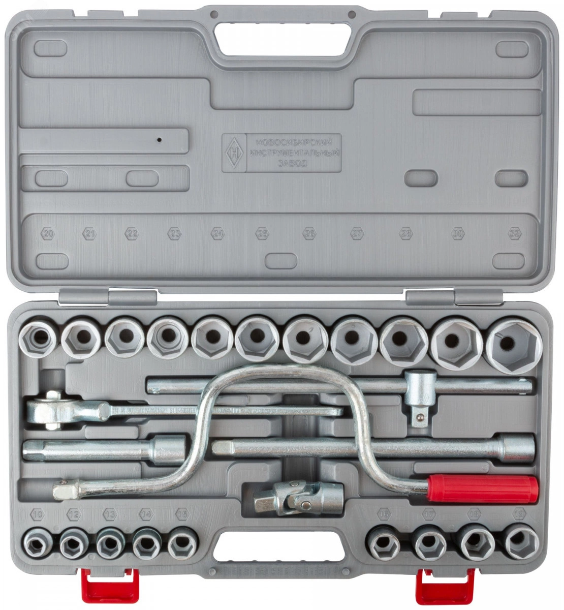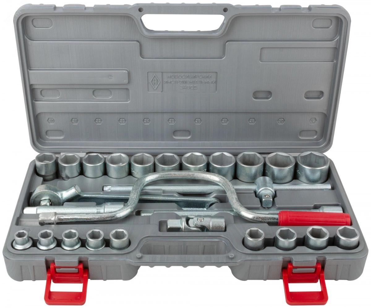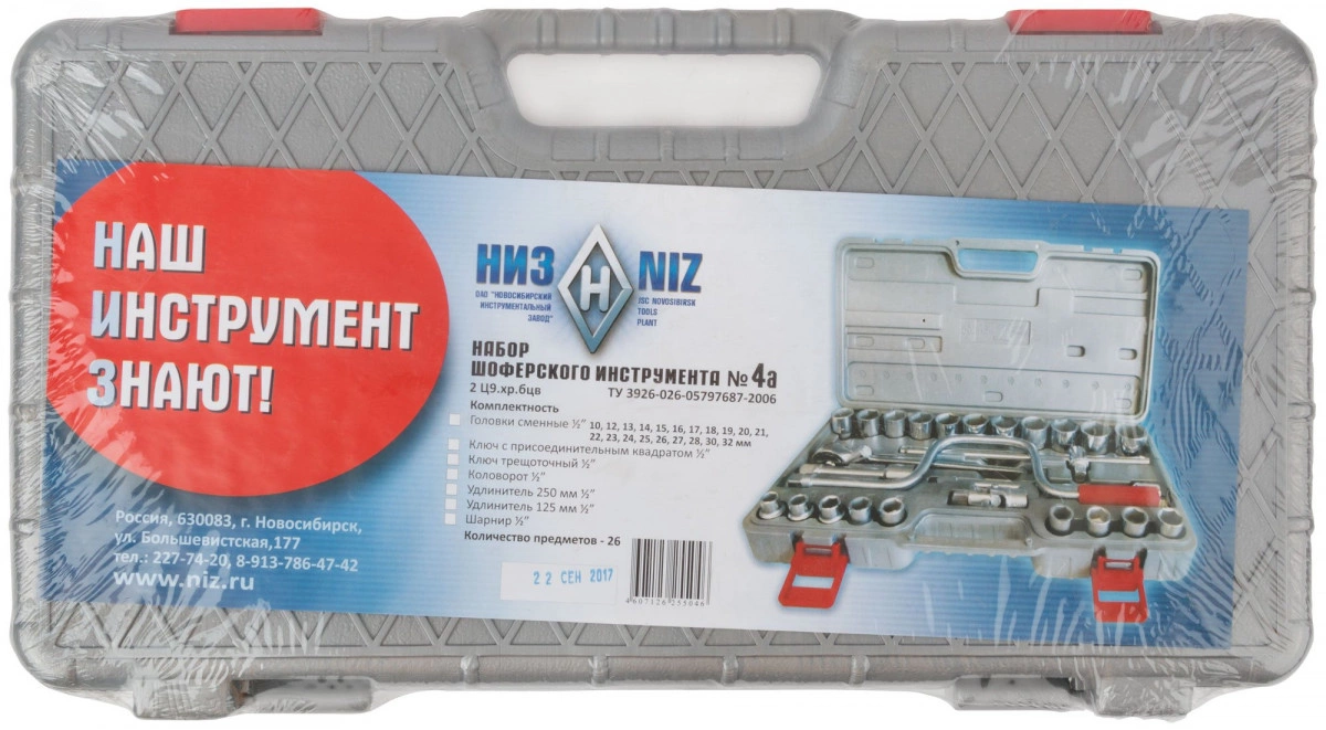 Набор ''Всё для автомобиля'' НИЗ №4 включает в себя - вороток трещоточный 1/2' х 250мм, переходник шарнирный 1/2', вороток-рычаг с присоединительным квадратом 1/2', удлинитель 1/2' x 125мм , удлинитель 1/2' x 250мм , головки шестигранные 1/2' (10-12-13-14-15-16-17-18-19-20-21-22-23-24-25-26-27-28-30-32мм). Инструменты выполнены из конструкционной легированной стали и отличаются прочностью и износостойкостью. Набор поставляется в удобном пластиковом чемодане.