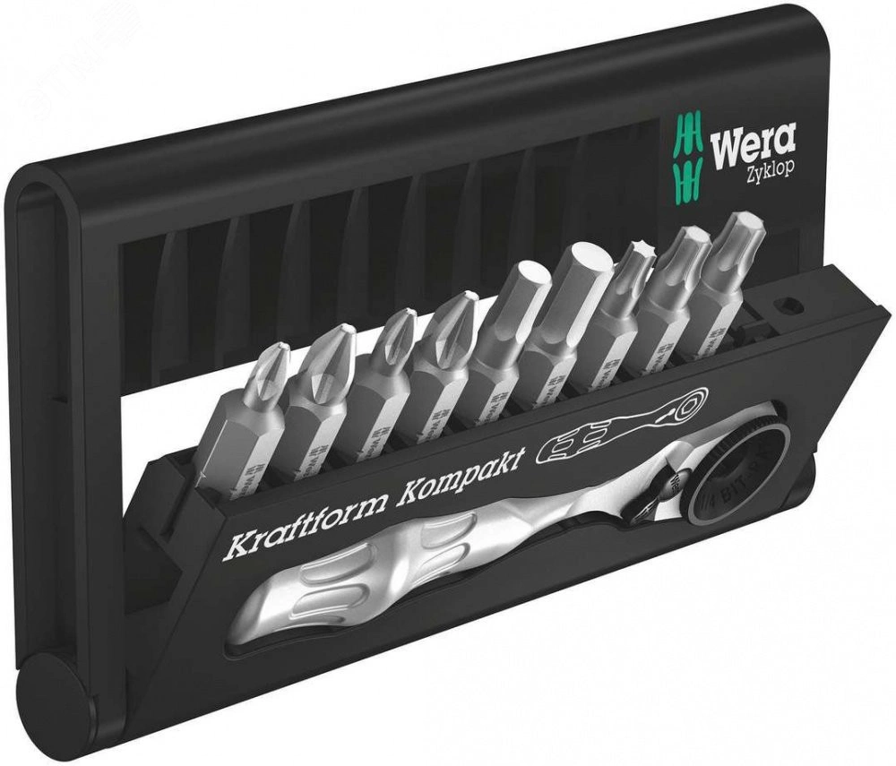 Много инструментов в компактном формате. Сортировка по профилю и размеру обеспечивает быстрый доступ к битам. Wera ручка-трещотка для битов. Штампованная цельнометаллическая конструкция. Тонкий механизм зацепления на 60 зубцов обеспечивает малый угол возврата 6 для точной работы. Простое переключение реверса. Эргономичная форма головки и рукояти трещотки.