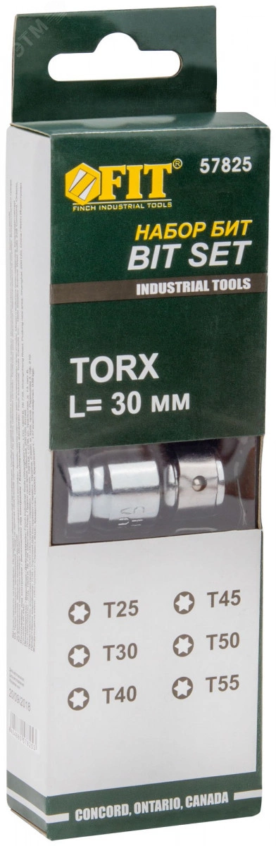 В наборе - 6 бит (длина 30 мм) из хром- ванадиевой стали (T25, T30, T40, T45, T50, T55) + адаптер с воротка на биту с посадочным диаметром 10 мм. Упаковка - коробка с подвесом.
