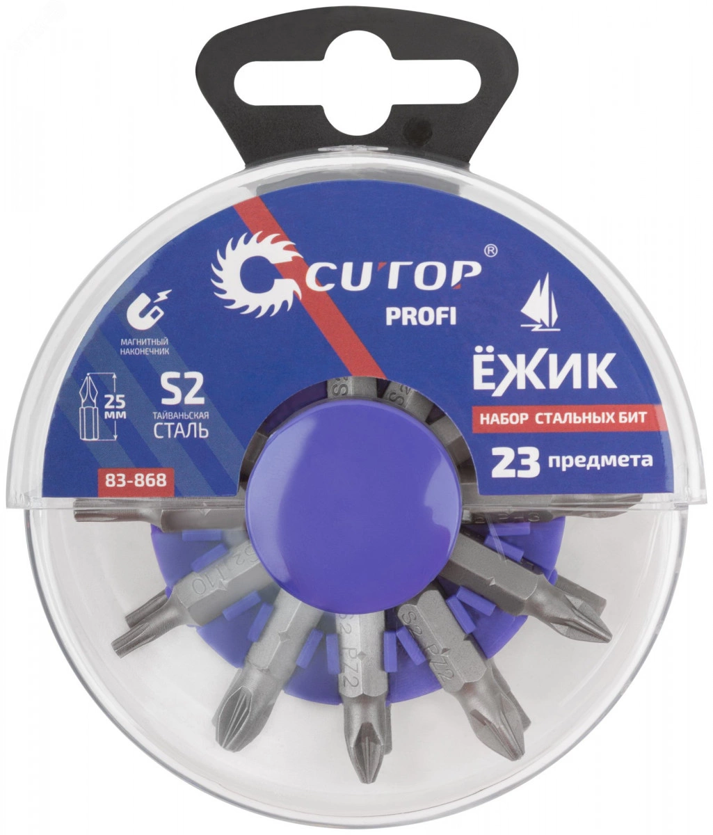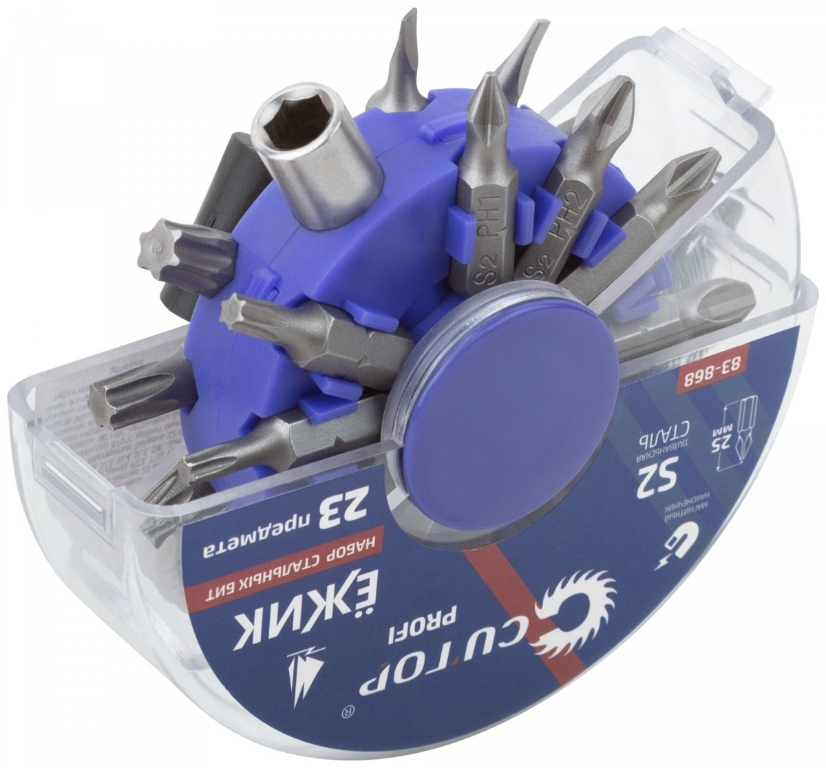 Набор бит в пластиковом боксе Cutop Profi, состоящий из 23 предметов, предназначен для использования с шуруповертами и гайковертами. Биты изготавливаются из тайваньской стали высшего качества марки S2 и отличаются высокой точностью. Ребра бит производятся с помощью холодной штамповки в соответствии с точной спецификацией. Шлицы проходят специальный процесс закалки при температурах до 870 градусов Цельсия — в результате их твердость достигает 60 HRC, что увеличивает срок службы оснастки. Пластиковый бокс удобно крепится на ремень, что способствует скорости и удобству работ.