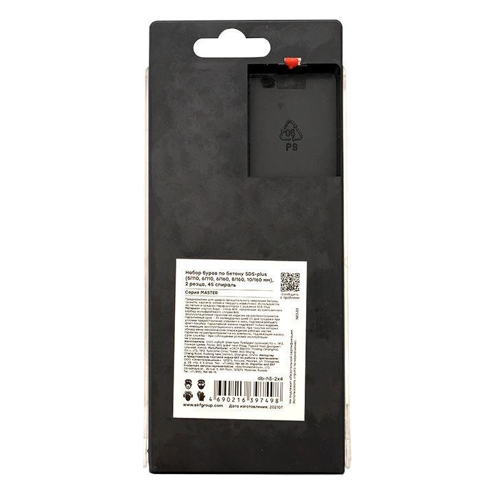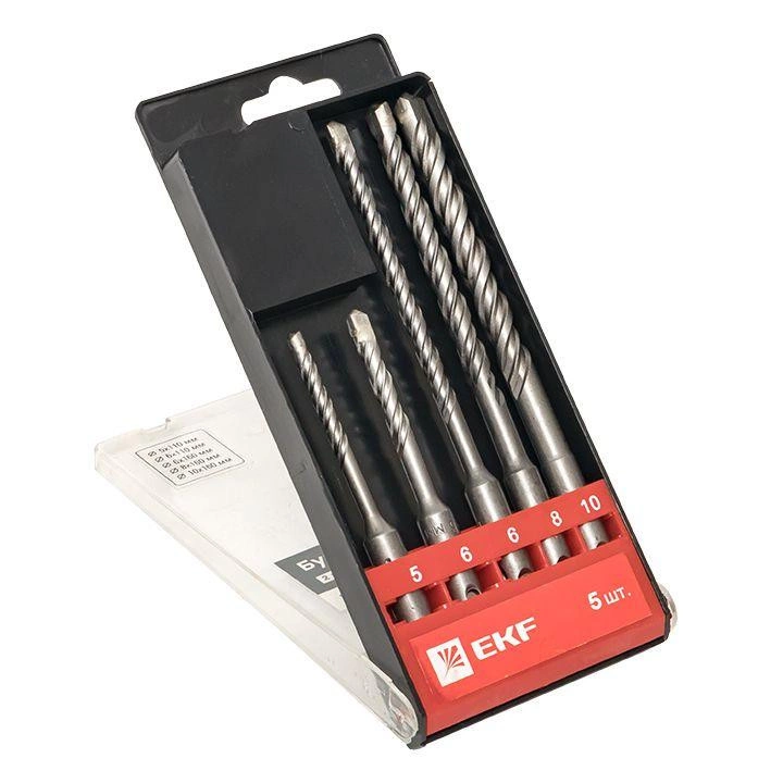 Набор буров по бетону SDS-plus (5/110; 6/110; 6/160; 8/160; 10/160) 2 резца 4S спираль Master EKF db-h5-2x4