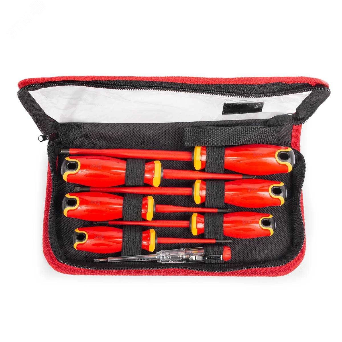 Профессиональный инструмент, который предназначен для работы с электротехническим оборудованием и электрическими соединениями. Набор состоит из 7 отверток разного размера и формы, которые имеют диэлектрическое покрытие для защиты от поражения электрическим током. Все инструменты изготовлены из качественной стали и имеют удобную ручку для комфортной работы. Набор поставляется в прочном кейсе для удобного хранения и транспортировки.