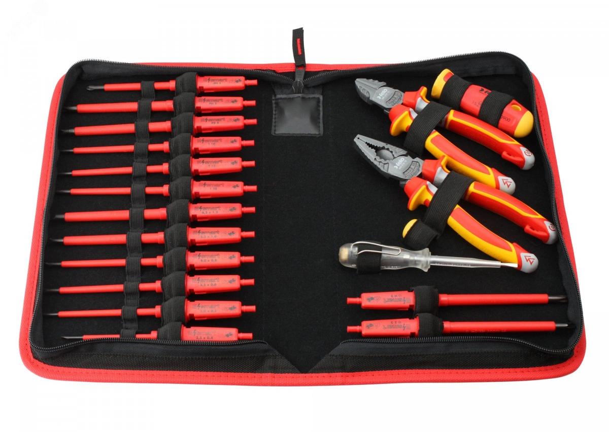 Набор диэлектрических стержней, рукоятки E-SMART, бокорезов и плоскогубцев с отверткой тестером сети в сумке, 19 шт