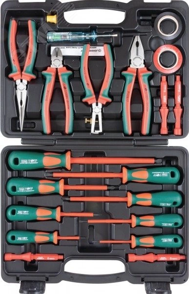 Набор диэлектрический с изолентой, отверток стержневых и шарнирно-губцевого инструмента, 20 предметов