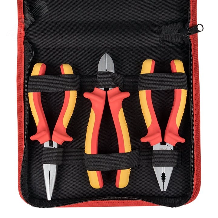 Набор диэлектрического инструмента предназначен для выполнения большинства задач, стоящих как перед профессиональным электромонтажником, так и перед домашним мастером, а также наилучшее решение для компактного хранения инструмента и его удобной переноски – мягкий пенал, отшитый из современных синтетических водо- и грязеотталкивающих тканей с мягкой подкладкой. Для каждого предмета предусмотрена своя ячейка – инструмент не потеряется после работы. Наборы диэлектрического инструмента предназначены для проведения электромонтажных работ в электроустановках напряжением до 1000 В переменного тока промышленной частоты. Наборы содержат ручной диэлектрический инструмент различного назначения. Каждый инструмент прошел индивидуальное тестирование воздействием напряжения 1О кВ в соответствии с требованиями МЭК 60900 -2004.
