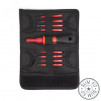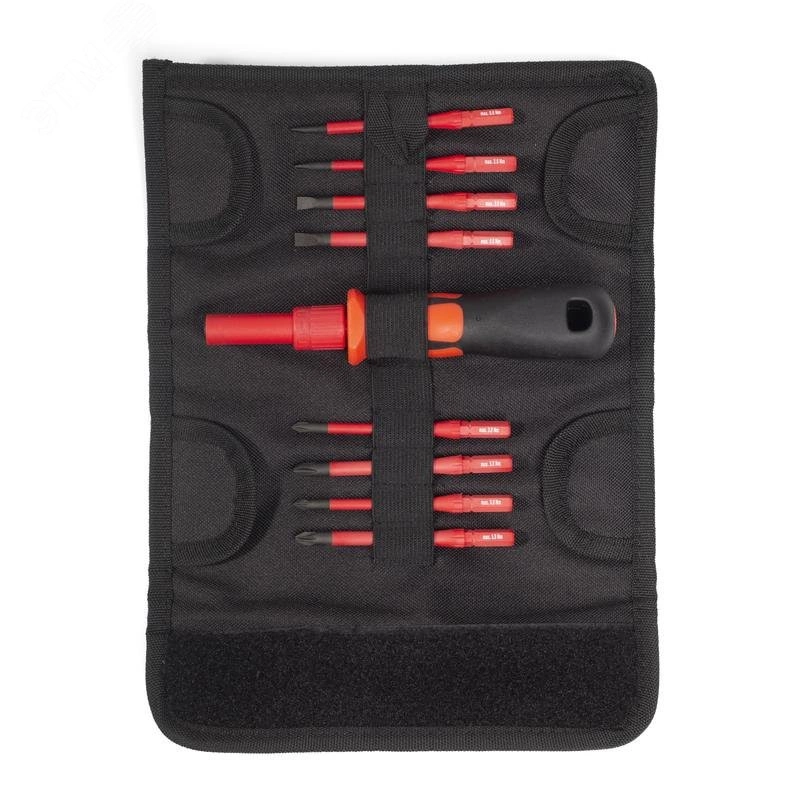 Для работы под напряжением до 1000 В. Утопленная в лезвие отвертки изоляция делает возможным монтаж винтов с глубокой посадкой. Материал стержня биты - хром-ванадиевая сталь. Вороненые намагниченные наконечники. Материал изоляции биты - полипропилен. На каждой бите — маркировка типоразмера. Двухкомпонентная рукоятка с мягкими вставками из термопластрезины. Надежный поворотный механизм фиксации биты в рукоятке. Упаковка - прочная раскладывающаяся сумка с широкой застежкой-липучкой и петлей под ремень. Вес набора - 245 г.