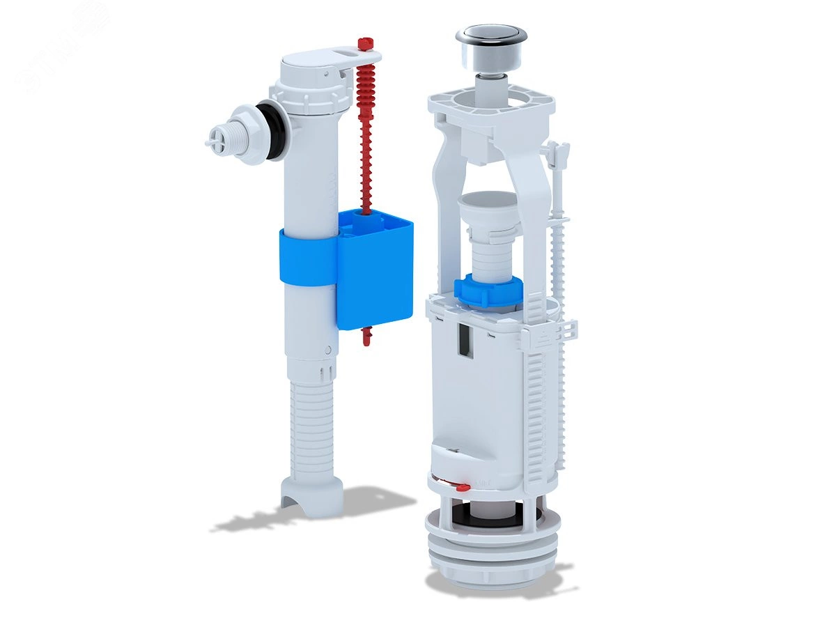 Набор для бачка унитаза с боковой подводкой 1/2'с пластиковым щтуцером кнопка хром