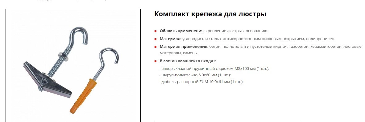 В нашем интернет-магазине вы можете купить Набор для крепления люстры в Екатеринбурге, артикул 114428. Чтобы уточнить условия оплаты, доставки и действующие скидки на товар, свяжитесь с нашим менеджером по телефону +7 (343) 266-30-88.