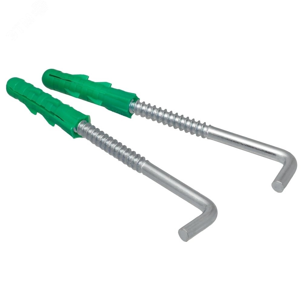 Набор для крепления водонагревателя объемом до 100 л MasterProf 8х100, 2 шт предназначен для монтажа водонагревателя к полнотелым основаниям, таким как полнотелый кирпич, бетон, камень. В комплект входят 2 оцинкованных крюка - шурупа 8*100, 2 нейлоновых дюбеля. Упаковка с европодвесом. Производенно в России.
