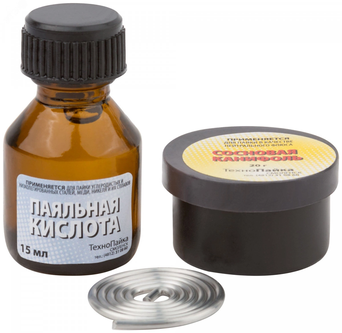 Набор для пайки № 1 (припой ПОС-61 10 гр , канифоль сосновая 20 гр , кислота паяльная 15 мл)