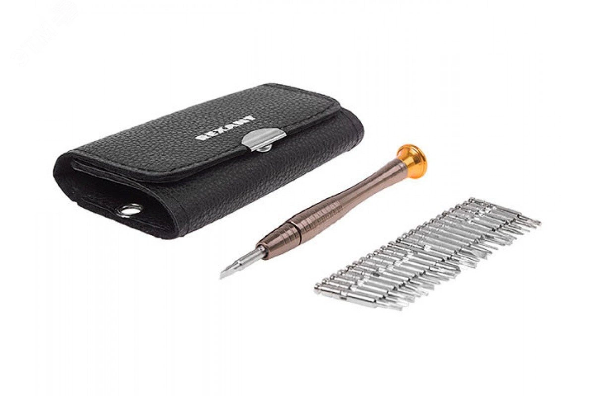 Набор отверток REXANT 25 в 1 оптимален для выполнения прецизионных работ в электронике и электромеханике, ремонта большинства видов и моделей популярной портативной техникис(мартфонов, часов, планшетных ПК, игровых приставок, фотокамер, электронных сигарет). Комплект пригодится для ремонта техники Apple. Инструменты выполнены из качественной стали, обладающей высокой прочностью к механическим повреждениям и образованию ржавчины. Отвертка эргономичной формы обладает вращающейся шляпкой. Набор инструментов поставляется в футляре для удобного хранения и транспортировки.