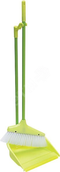 Грейс'. Комплект для уборки на длинных ручках. Материал - пластик, нейлон, резина. Окрашенный металлический черенок. Резинка по кромке совка. Размеры - 240 х 250 х 810 мм.