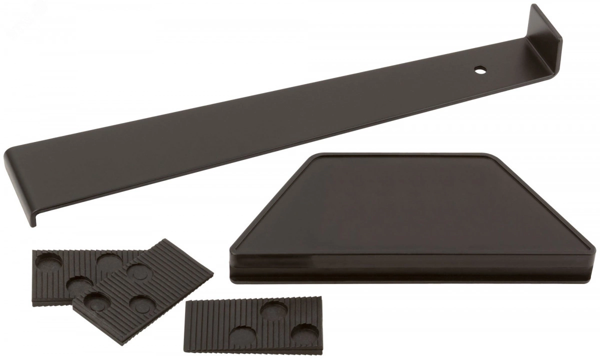 В наборе - пластиковый брусок, монтажная скоба, пластиковые клинья (20 шт.). Регулировка расстояния между ламинатными панелями и стеной с помощью пластиковых клиньев, возможность работы в ограниченном пространстве. Материал - инструментальная сталь, пластик. Упаковка - картонная коробка.