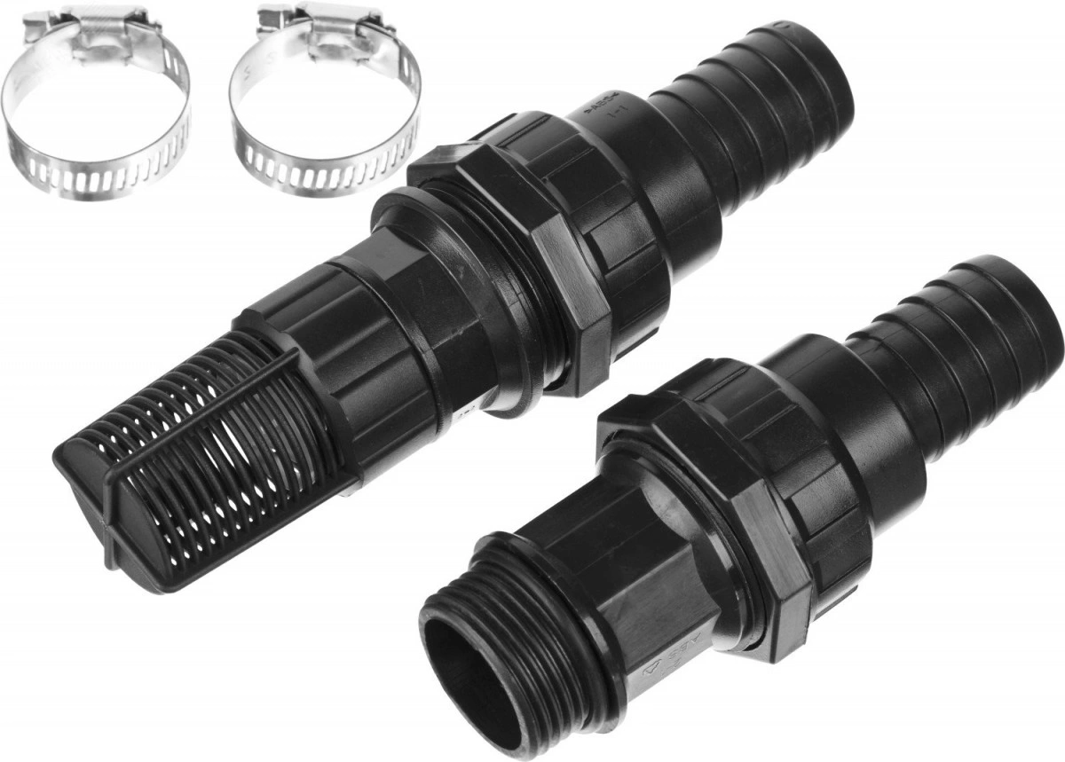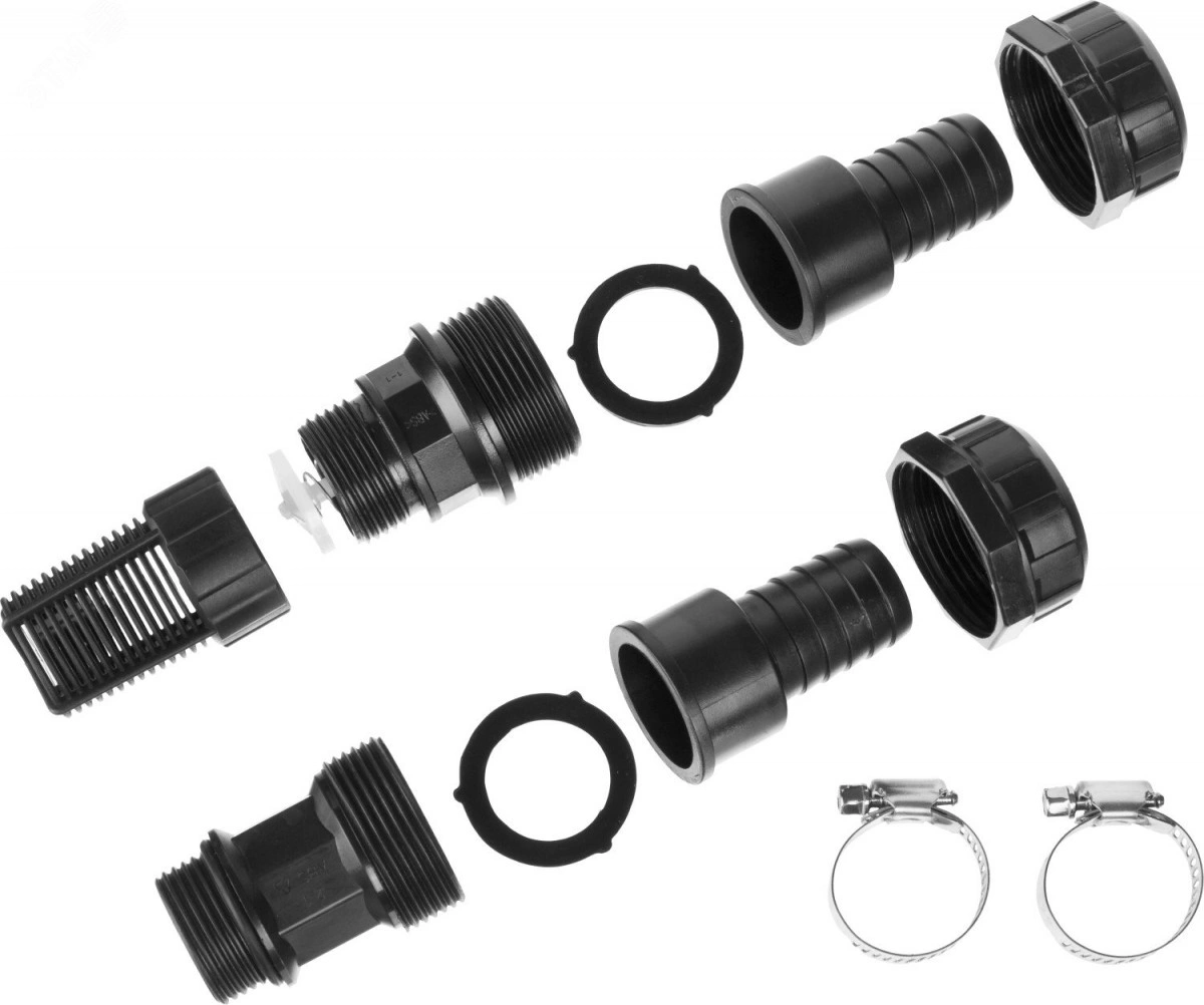 Набор арматуры позволяет собрать комплект для откачки воды из различных водоёмов. Подходит к всасывающим шлангам с внутренним диаметром 1'', подключается к насосу с помощью резьбового соединения 1''. Состоит из обратного клапана с фильтром для воды, адаптера для подключению к насосу и двух хомутов. Фитинги из ударопрочного пластика и хомуты из нержавеющей стали обеспечивают высокую надёжность соединений и гарантирует продолжительный срок службы изделия.