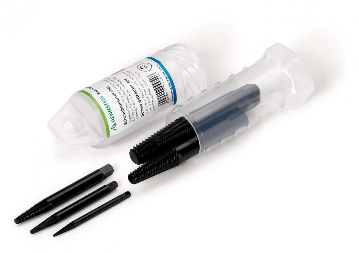 Экстракторы для винтов набор Rennsteig SCHRAUBENAUSDREHER-SATZ 6-TLG RE-4709013 поставляются в пластиковом футляре. Инструмент позволяет вывернуть болт без повреждения резьбы. Изделия подойдут только для правой резьбы.