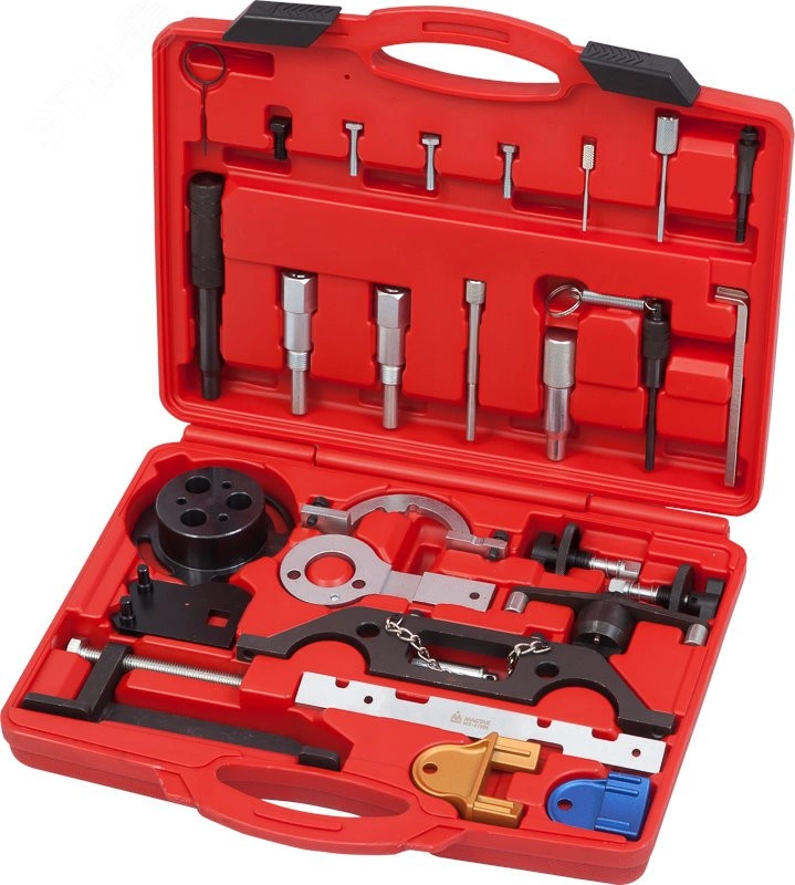 Набор включает все необходимые инструменты для профессионального ремонта двигателей Opel - фиксатор маховика, фиксатор коленчатого вала, фиксатор распределительного вала, фиксатор вала насоса высокого давления (применимо к дизельным моторам), съемник шкива коленвала, натяжитель ремня, а также подробные таблицы использования инструментов. Набор является полным функциональным аналогом оригинальных инструментов для Opel.
