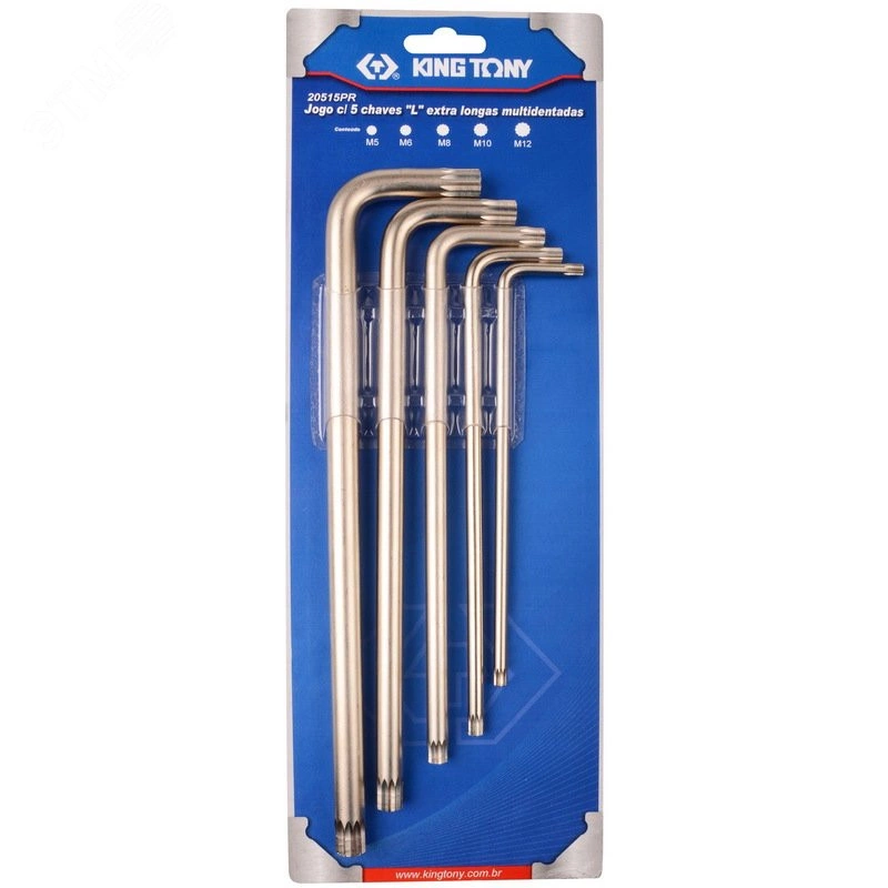 Набор Г-образных SPLINE, M5-M12, блистер, 5 предметов KING TONY 20515PR01. Набор марки KING TONY включает в себя инструменты для работы с внутренним профилем SPLINE (12-лучевая звезда) и предназначен для монтажа и демонтажа крепёжных узлов различных изделий, устройств и агрегатов. Особенности Форма инструментов позволяет применить разное плечо приложения нагрузки, а также при доступе к крепежу, находящемся в углублении Упаковка поможет удобно разместить набор в районе рабочего места, а также держать инструменты набора в порядке и сохранности. Комплектация Ключи Г-образные SPLINE, серия 1126MR Размеры: M5, M6, M8, M10, M12 Технические характеристики Материал: SNCM+V - легированная сталь с добавлением молибдена Габариты: 275х123х25 мм Вес: 0,609 кг KINGTONY – наслаждайся своей работой!