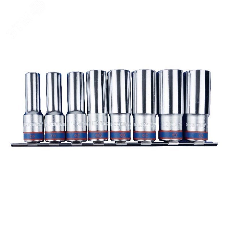 Набор глубоких двенадцатигранных торцевых головок включает в себя насадки для выполнения ремонтно-монтажных работ с метрическим крепежом. Головки имеют удлиненную конструкцию для эффективного откручивания/закручивания болтов и гаек в труднодоступных местах. Все компоненты удобно располагаются в отельных ложементах закрывающегося кейса для сохранности комплекта при хранении и транспортировке.