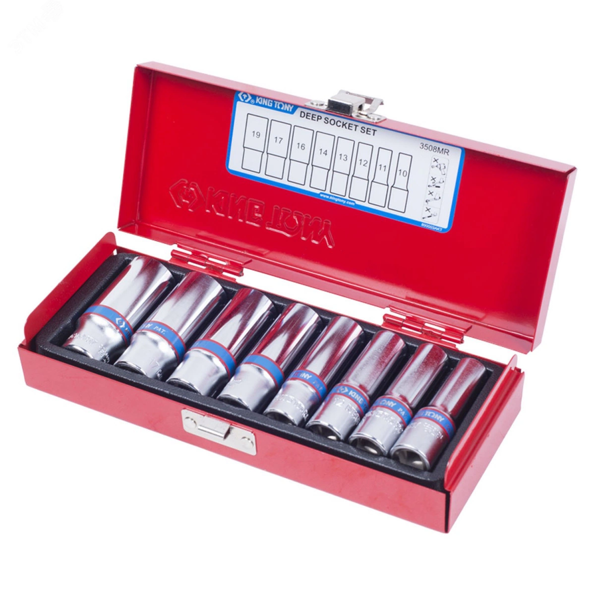 Набор глубоких торцевых головок 3/8', шестигранные, 10-19 мм, 8 предметов