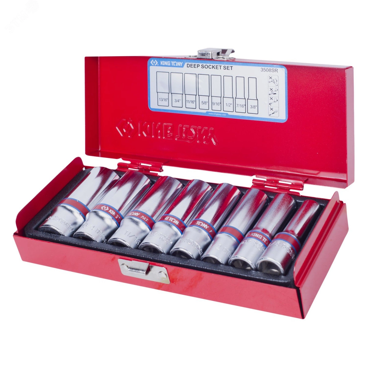 Набор глубоких торцевых головок 3/8', шестигранные, 3/8'-13/16', 8 предметов