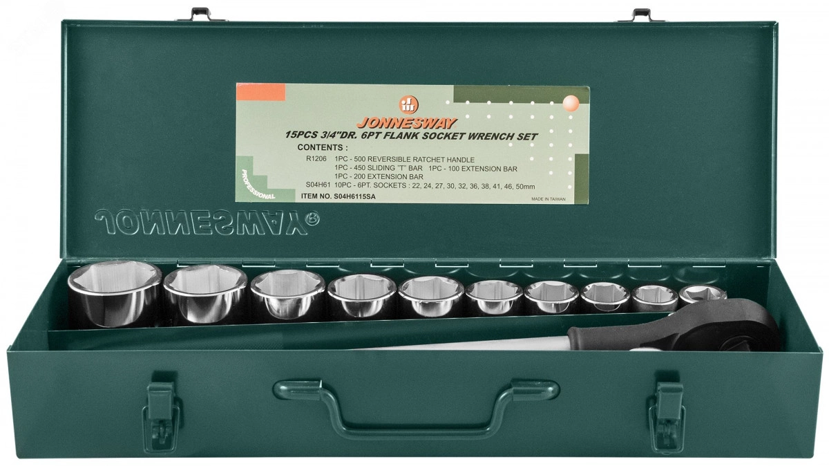 Набор головок торцевых 3/4''DR, 22-50 мм, 15 предметов