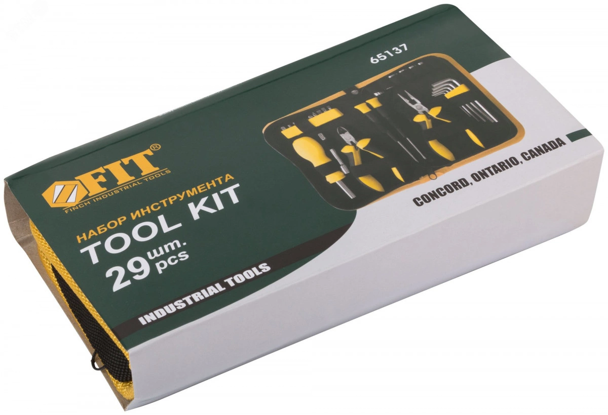 Набор инструментов FIT IT (29 предметов) предназначен для проведения ремонтных работ. В наборе - 5 шестигранных ключей, 2 отвертки, отвертка с набором бит (10 шт.), адаптер-удлинитель, 7 головок, бокорезы и тонконосы. Инструменты выполнены из качественной инструментальной стали, отличаются прочностью и износостойкостью. Набор поставляется в удобном матерчатом чехле.