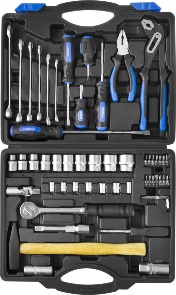 Набор качественного автомобильного инструмента для проведения слесарно-монтажных и ремонтных работ. Все компоненты данного набора выполнены из углеродистой стали и обладают долгим сроком службы. Покрытие рабочих поверхностей хромом гарантирует защиту от образования коррозии. Инструменты расположены в надежном пластиковом кейсе с ячейками для каждого изделия.