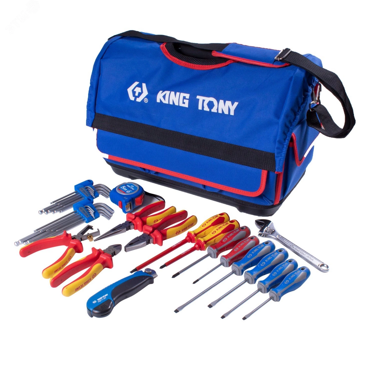"Набор с инструментом торговой марки KING TONY включает в себя принадлежности к торцевым головкам и предназначен для монтажа и демонтажа крепёжных узлов различных изделий, устройств и агрегатов.