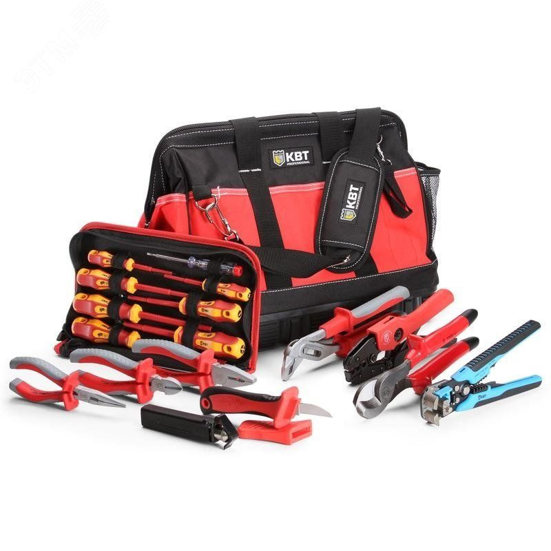 Состав набора - Пресс-клещи СТК-01. Изолированные ножницы НКи-16у. Стриппер WS-04B. Стриппер КС-25, нож монтерский изолированный НМИ-02. Изолированные пассатижи 180 мм, изолированные бокорезы 160 мм, изолированные длинногубцы 200 мм Клещи переставные диэлектрические 250 мм Набор изолированных отверток НИО-08 - отвертка - шлиц 3 х 75, отвертка - шлиц 4 х 100, отвертка - шлиц 5.5 х 125, отвертка - шлиц 6.5 х 150, отвертка - PH0х 75, отвертка - PH1 х 100, отвертка - PH2 х 100, отвертка-индикатор. Прочная сумка С-01 (КВТ) с резиновым дном и большим количеством отделений. Вес набора с сумкой - 5,40 кг