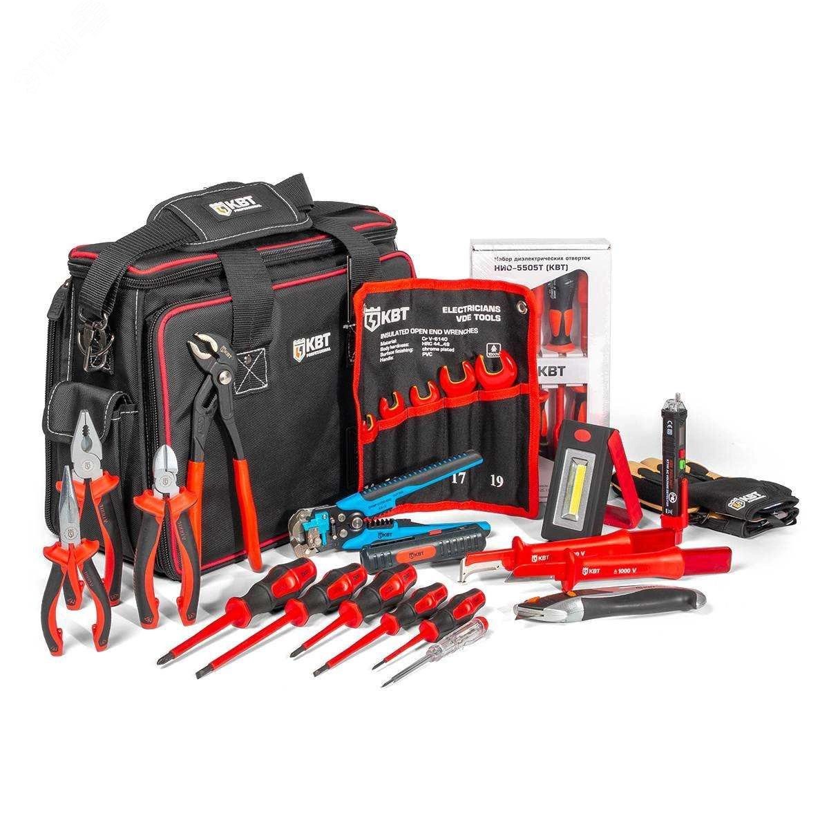 Включает в себя самые необходимые инструменты, которые могут понадобиться при работе с электрооборудованием или проведении электромонтажных работ - диэлектрическая отвертка 2.5х75, диэлектрическая отвертка 4.0х100, диэлектрическая отвертка 5.5х125, диэлектрическая отверток РН1х80, диэлектрическая отверток РН2х100, отвертка-индикаторная, пассатижи диэлектрические 180 мм, бокорезы диэлектрические 180 мм, длинногубцы диэлектрические 160 мм, диэлектрические однорожковые ключи - 10, 12, 13, 17, 19, стриппер WS-04B, стриппер WS-09, набор диэлектрических отверток НИО-2205-Т, клещи переставные диэлектрические 250 мм, нож монтерский диэлектрический НМИ-11, нож монтерский диэлектрический НМИ-15, бесконтактный детектор напряжения KT 100 PROLINE, перчатки монтажника, нож строительный монтажный НСМ-19, фонарик переносной FL-7007 - Всего в наборе - 20 предметов в сумке электромонтажника С-04.