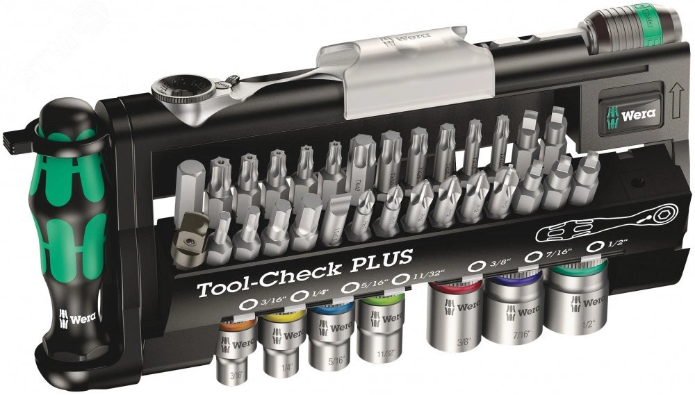 Полное описание: Набор инструментов Tool-Check PLUS Imperial включающий трещотку биты головки и ручку-держатель 39 предметов комплектация: 1x 8001 A Bit Ratchet 1/4 x 87 мм 1x 813 Рукоятка-битодержатель 1/4 x 78 мм 1x 889/4/1 K Универсальный держатель Rapidaptor