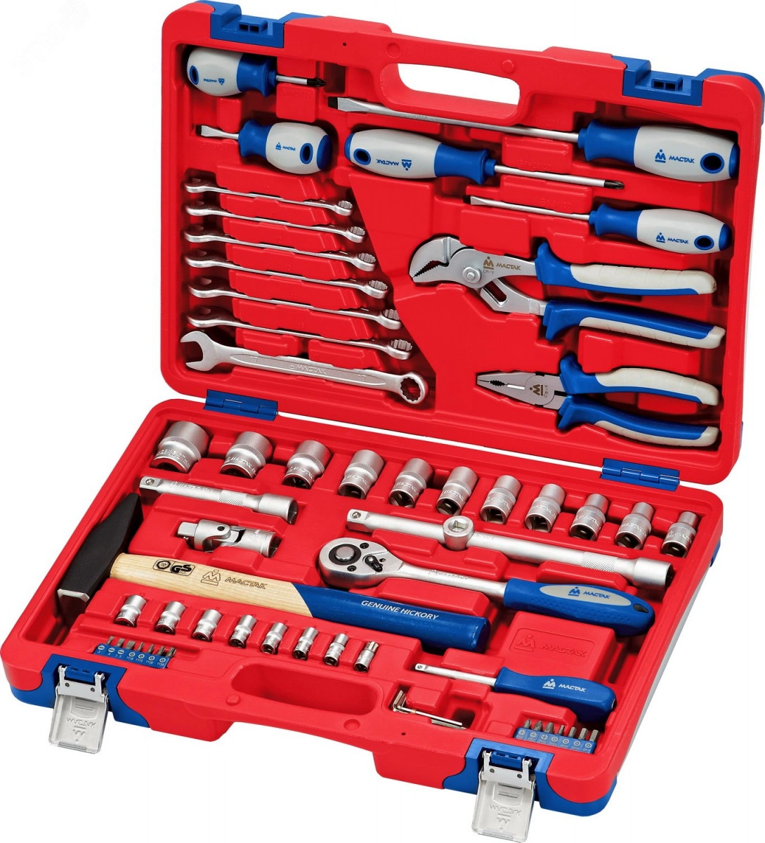 Подойдет для использования как автомастерских, автосервисах, так и для ремонта и обслуживания автомобиля в гараже. Комплект поставляется в прочном кейсе с металлическими защелками, что дает возможность брать набор в дорогу. Инструменты изготовлены из прочной хромованадиевой стали. Рукоятки инструментов выполнены из маслобензостойкой резины.