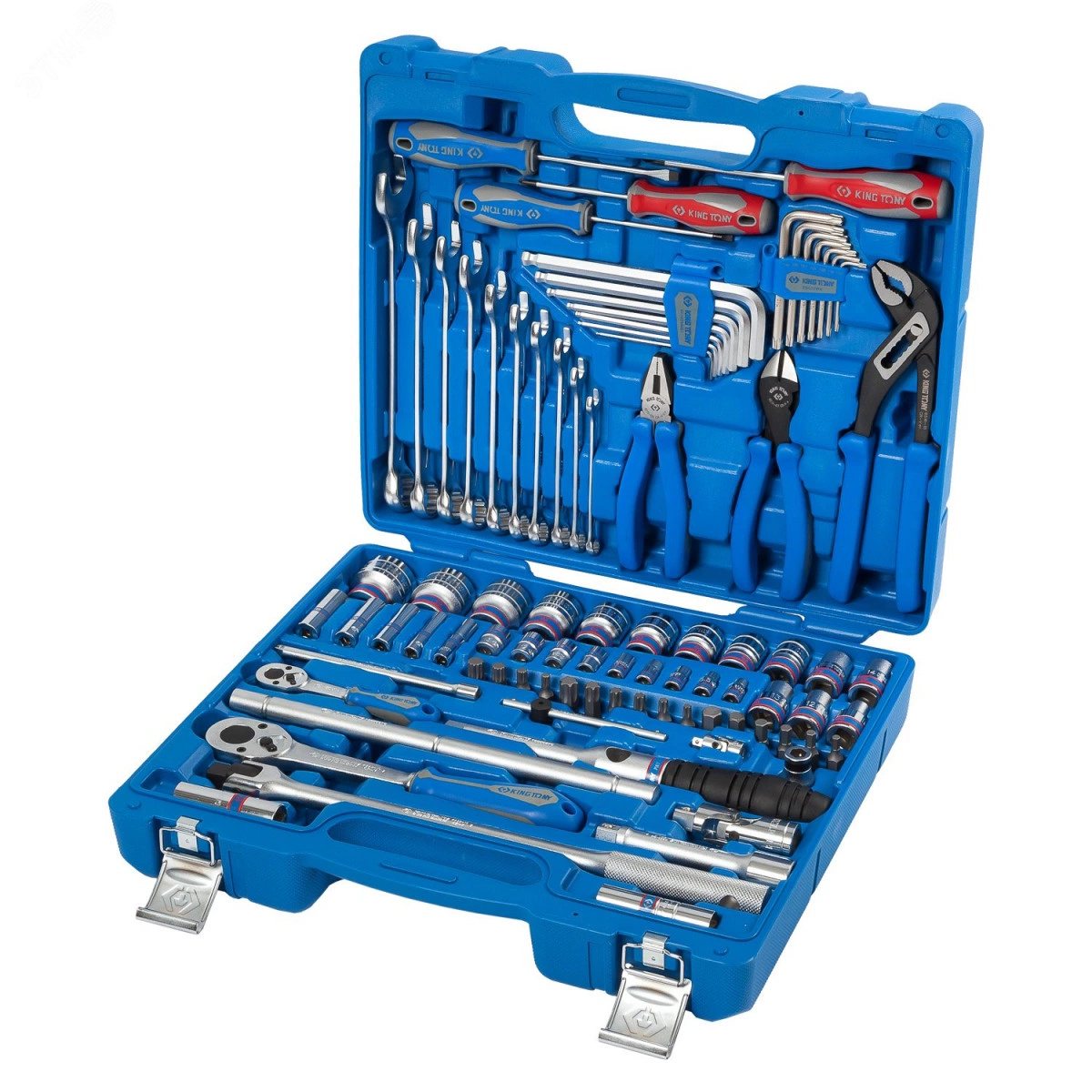 Новинка торговой марки KING TONY в линейке универсальных наборов. Комплектация набора делает его незаменимым помощником практически для любого применения. Головки и принадлежности 2-х форматов присоединительного квадрата - 1/2' и 1/4'. В составе набора ключ крестовой разборный – незаменимый инструмент для работы с колесным крепежом - быстро и удобно. Конструкция кейса - усиленные ребра жесткости, новые клипсы CLIP-LOCK. Кейс из пластика марки ABS -прочный, стойкий к воздействию агрессивных жидкостей, не теряет физических свойств при низких или высоких температурах окружающей среды