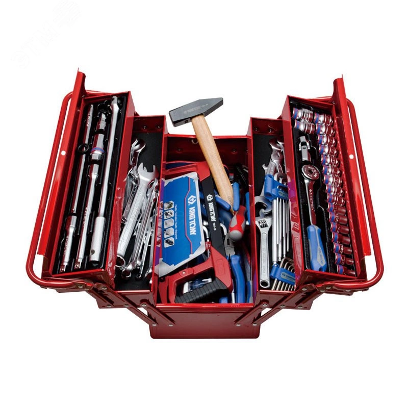 Универсальный набор инструментов включает в себя широкий ассортимент ручных принадлежностей и оснастки. Каждый элемент набора занимает строго отведенное место ящика или ложемента, благодаря чему обеспечивается упорядоченное хранение всех инструментов. Комплект приспособлений используется в сфере автосервиса для обслуживания и ремонта разнообразных резьбовых узлов.