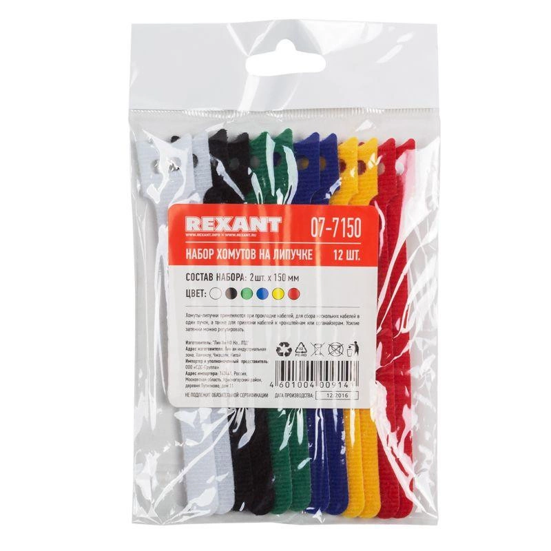 Полное описание: Набор хомутов MGT-150 12х150 многораз. на липучке разноцвет. 12шт. Rexant 07-7150