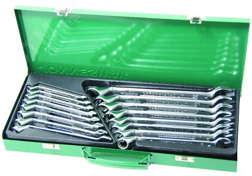 Набор ключей гаечных комбинированных с накидным изогнутым профилем 75° в кейсе, 7-24 мм, 16 предметов
